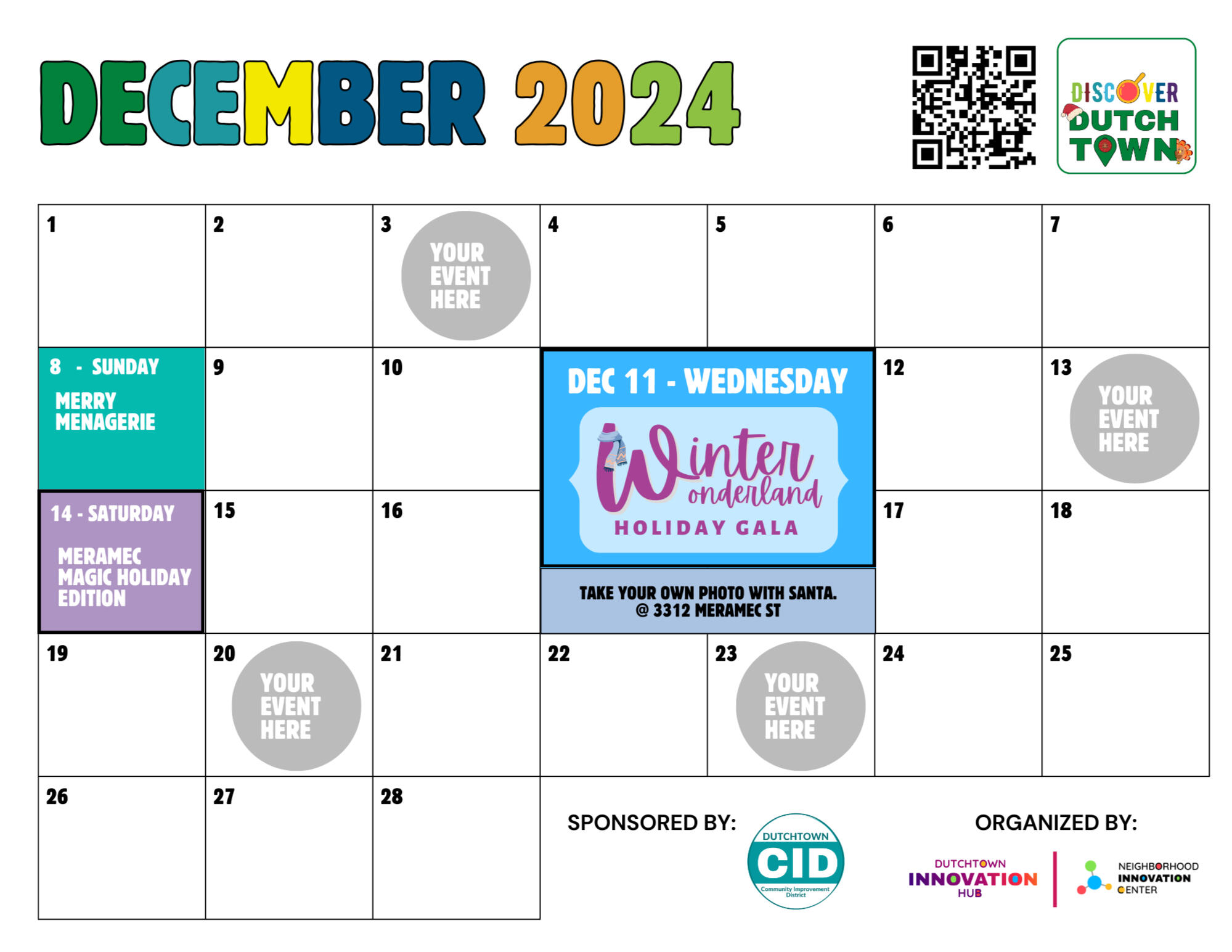 Check out the Holiday Event Calendar for key dates and events across Dutchtown Discover campaign-wide events like Winter Wonderland Gala, as well as special dates hosted by participating businesses. Don’t miss out on all the festive happenings!